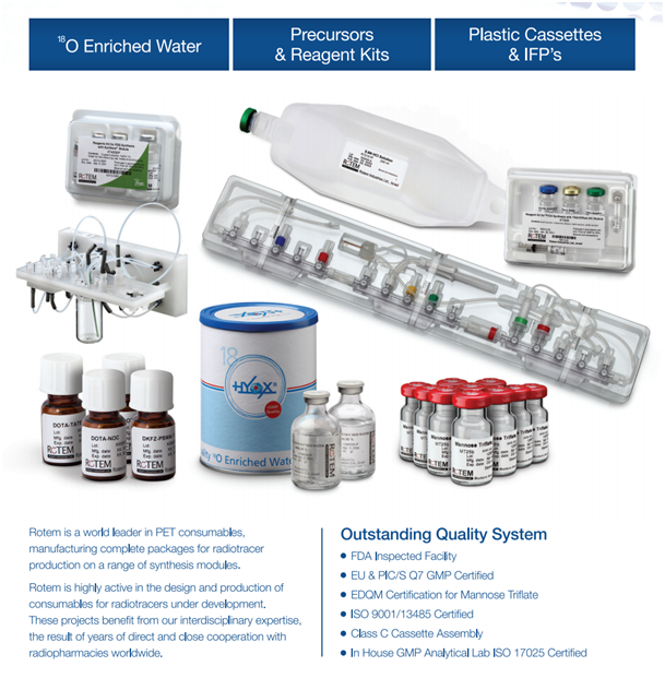 核医学用化学试剂包括重氧水、FDG合成药盒、Ga-68合成试剂等。